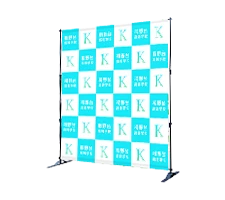 背面を装飾できる特注バックパネルは、学校名やロゴの印刷製作が可能。オンライン説明会の際にもご使用いただけます。