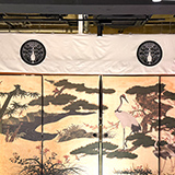 三つ巴紋が大きくプリントされた横幅5mを超える大きな幕は迫力がありますね!