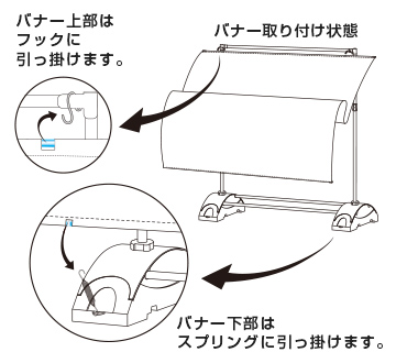 オリジナルプリントを施したバックパネルとして、表側と裏側の両面でのメディア設置が可能なバナーなので、イベントやフェアでも効率よく販促を行えて便利です。