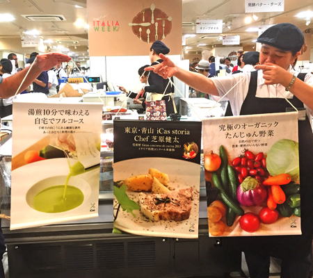 オーガニック野菜使用のPRや美味しそうな料理の写真は、賑やかな催事場の中でもしっかりとブースをアピールしてくれますね。