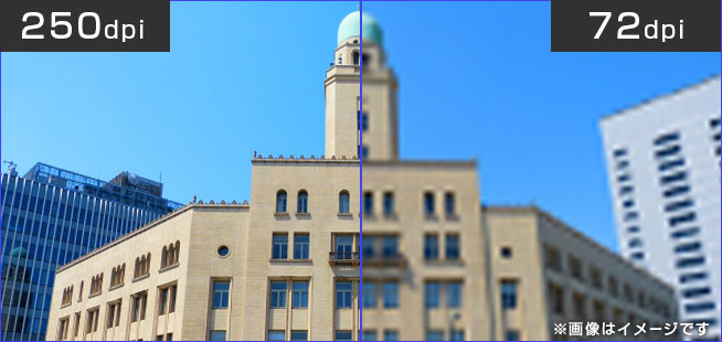 しかし、オリジナルタペストリーに写真デザインを印刷する際の解像度は250dpi以上の細かい解像度が必要となり、それ以下の解像度では写真がぼやけてプリントが荒くなってしまいます。