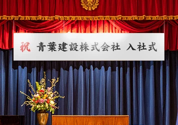 式典会場では、装飾品にも会場に相応しい品格が求められます。オリジナル製作の場合、卒業式や成人式、入社式など、各式典に合わせた高品質な旗・幕の特注作成が可能です。