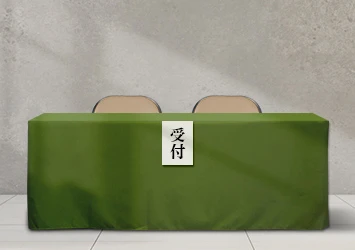 受付や来賓席に使用するテーブルクロスも、お好みの色やサイズにてご注文頂けます。校章やコーポレートロゴを名入れした特注のオリジナルテーブルクロスは、説明会などのイベントの際もマルチに活躍します。